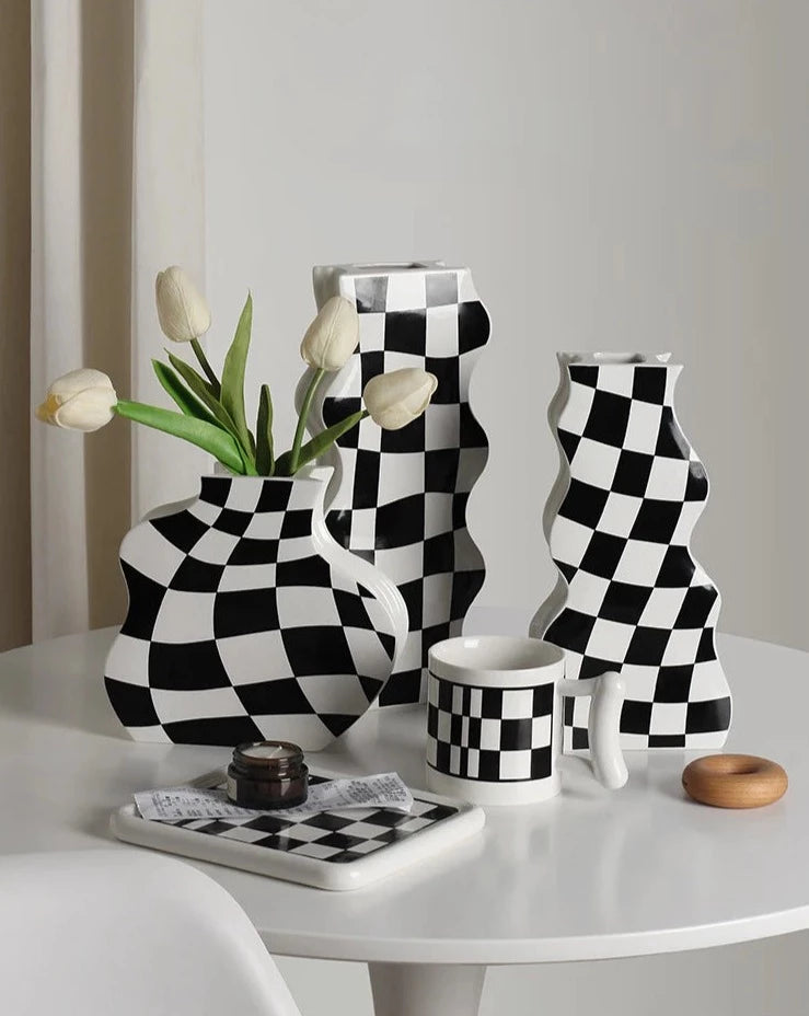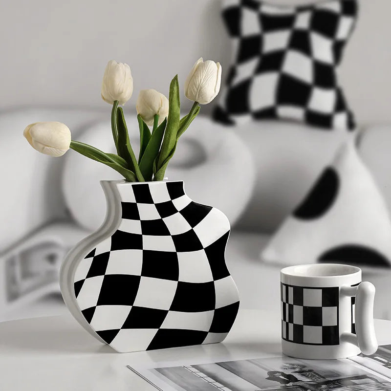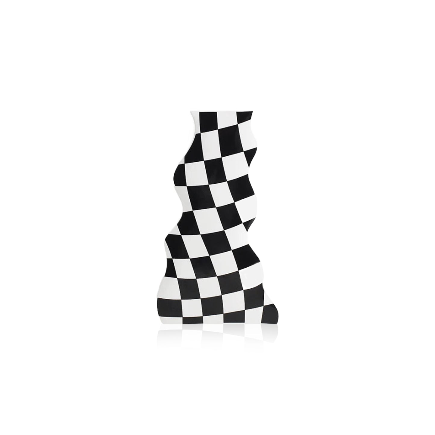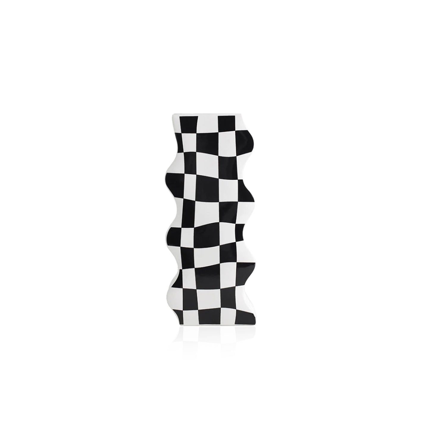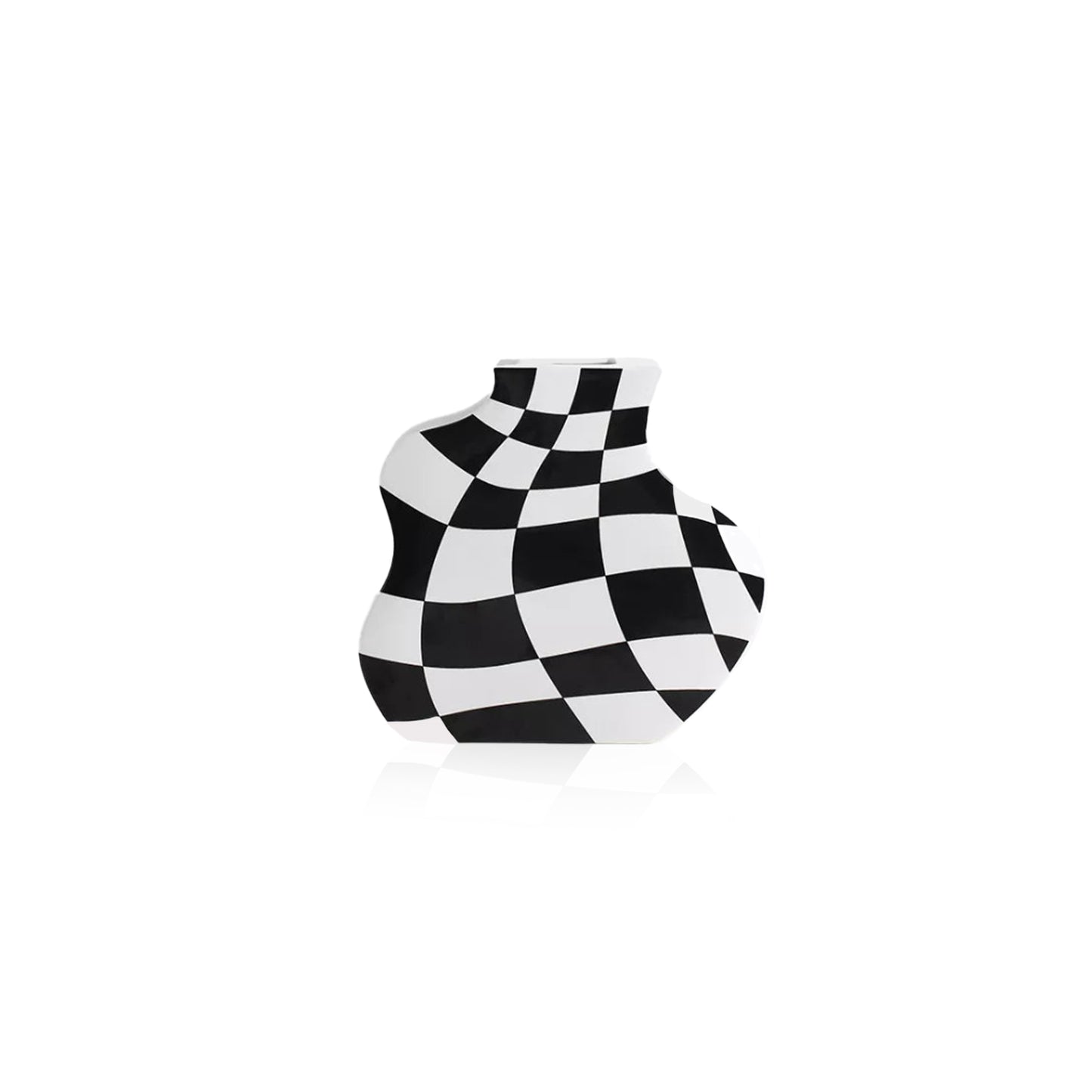 This ceramic vase features a striking black and white check board design that adds a up to dated touch to any space. Crafted with quality in mind, this vase is a stylish and versatile addition to your home decor.