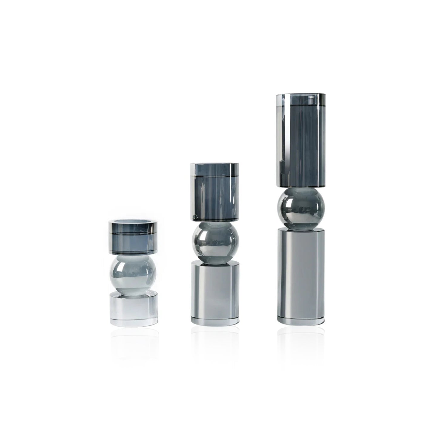 Hand crafted with precision, these Stacked Geometry Crystal Candle Holders add elegance and charm to any room. Made with high quality crystal glass, these holders are a beautiful addition to your home decor. Light up your space and create a warm, inviting ambiance with these stunning candle holders.
